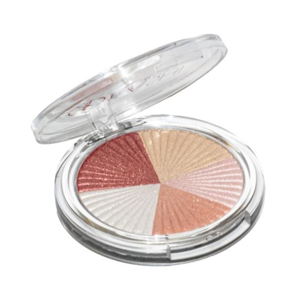হাইলাইটার প্যালেটটি খুব কম অনুভূতি সহ আরও উজ্জ্বল প্রভাবের জন্য একটি প্রাকৃতিক চকচকে অফার করে। হাইলাইটার আলো ছড়িয়ে দেয় এমন কণা দিয়ে নিজেকে সন্নিবেশ করে।