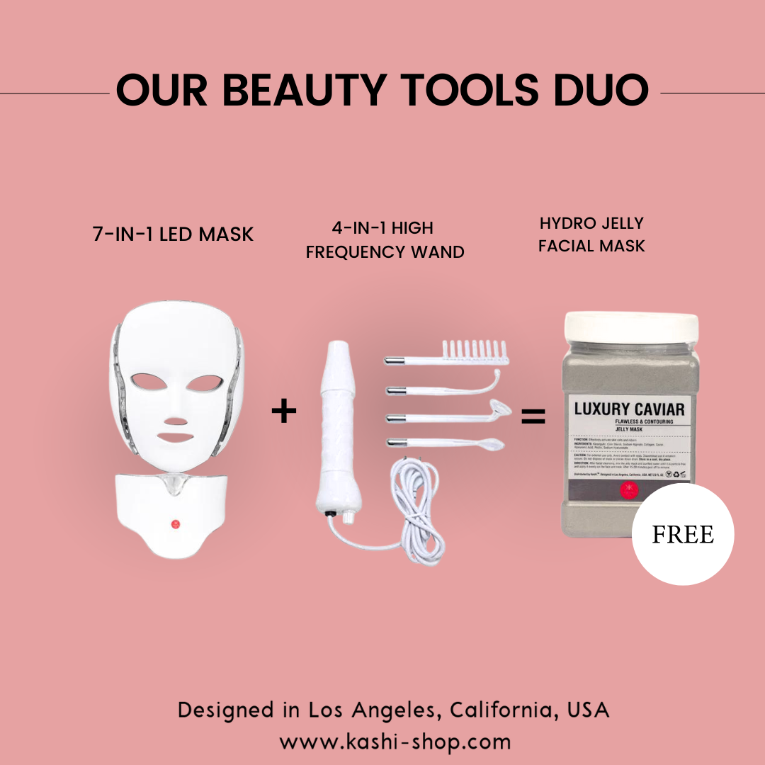 7 in 1 LED Mask: Harness the power of LED light therapy with our 7 in 1 LED Mask. This innovative mask features seven different LED light modes, each targeting specific skin concerns such as acne, wrinkles, and uneven skin tone. Say goodbye to dull, blemished skin and hello to a radiant complexion!