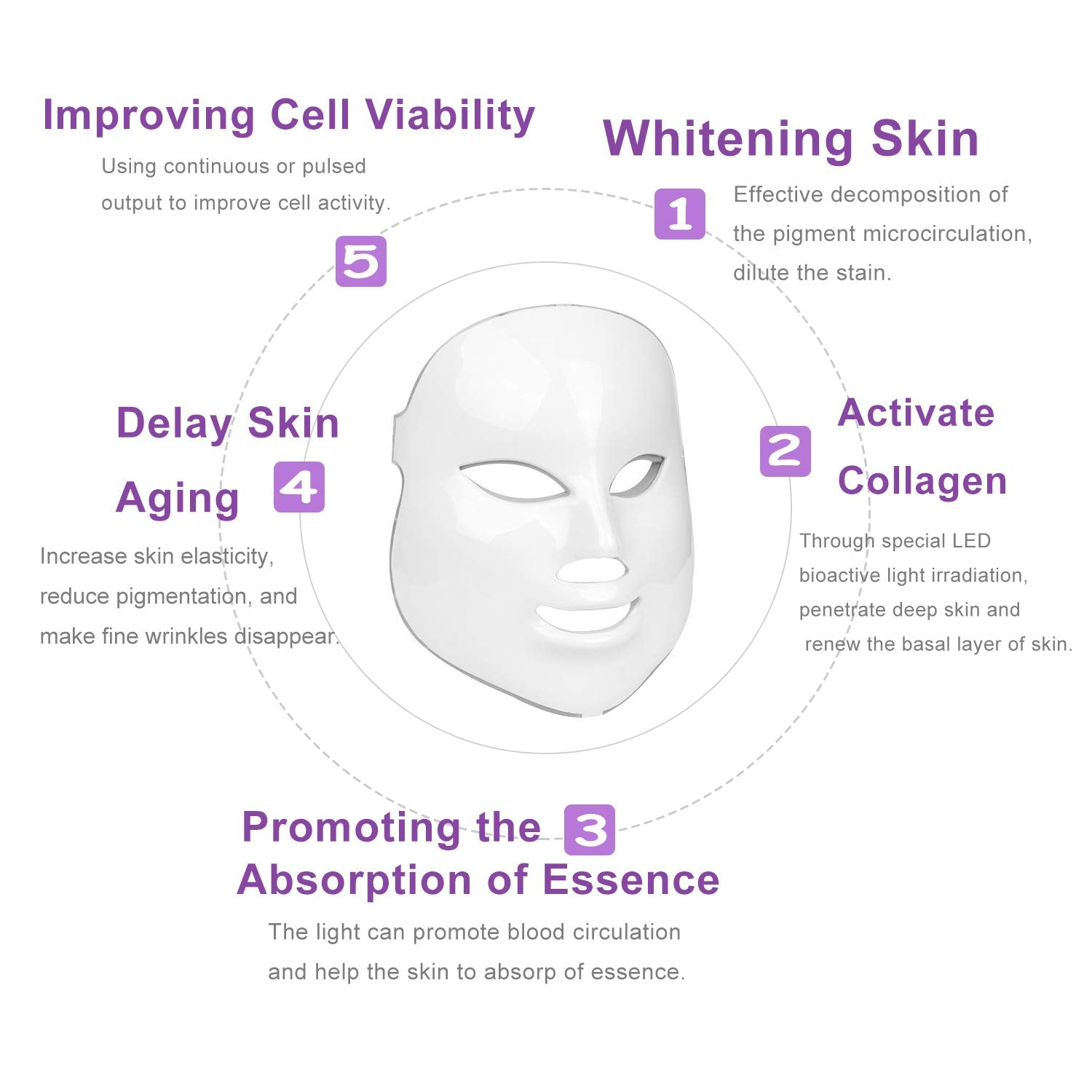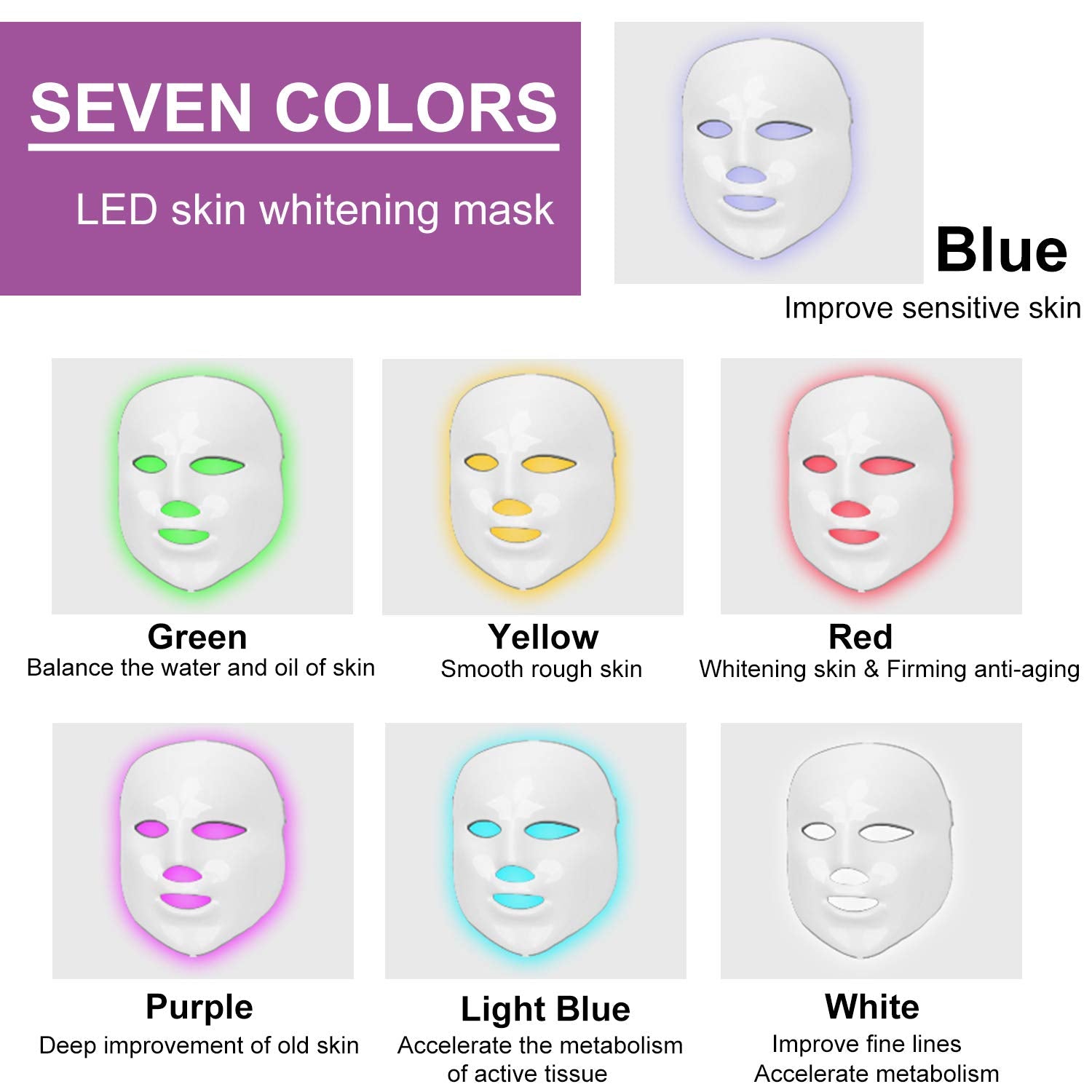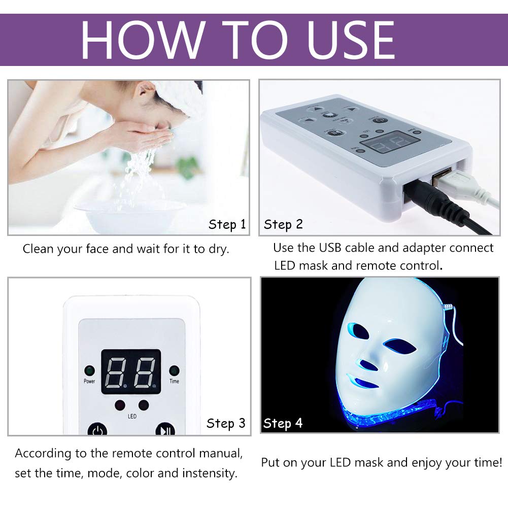· 7 Colors LED mask can solve stubborn skin problems,like heal acne and repair the acne scar.